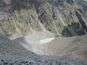 Il ghiacciaio d'Orein Sud, ormai in buona parte ritiratosi all'ombra della Becca des Lacs (3470 m) e della Gran Becca Blanchen (3680 m) separate tra loro dall'ampia depressione del Colle della Sassa, ha dato origine ad uno spettacolare anfiteatro morenico; la presenza di una colorazione nettamente diversa tra le morene destra e sinistra è dovuta al fatto che l'azione glaciale è avvenuta proprio in corrispondenza di un contatto tettonico tra le due diverse unità geologiche di Valpelline e di Arolla.