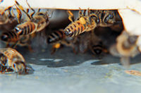 - ascoltare il brusio della famiglia colpendo il legno dell'arnia ed appoggiano l'orecchio sul lato posteriore della stessa permette di capire se le api sono vive e, in base all'intensità del brusio capire "a spanne" la forza della famiglia;