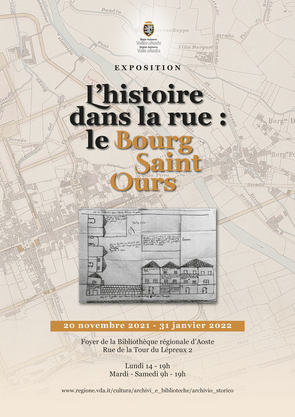 Locandina della mostra sul borgo di Sant'Orso Locandina della mostra sul borgo di Sant'Orso