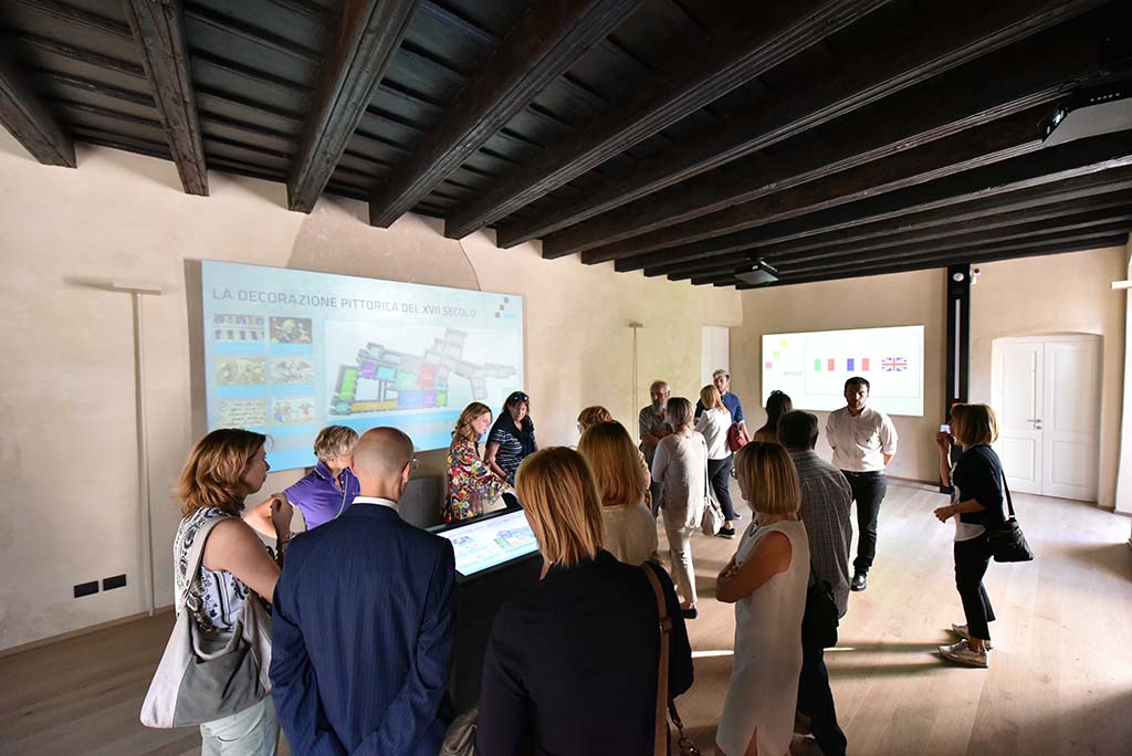 Una facciata bianca e sobria che racchiude al suo interno un susseguirsi di stanze decorate da magnifici affreschi tra cui spicca, quale gioiello nascosto, la cosiddetta “galleria delle Donne forti”, così chiamata per i particolari soggetti qui raffigurati: figure di donne tratte dall’Antico Testamento, dalla storia antica, classica e medievale rappresentate accanto a eroine emblematiche per le loro qualità e virtù morali in un sapiente gioco di rimandi e riferimenti sospesi tra filosofia, teologia e quotidianità.
