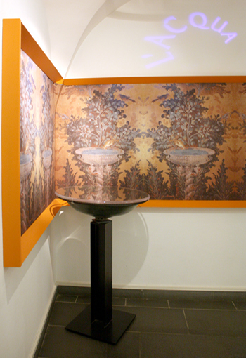 La riproduzione di un affresco di Pompei fa da sfondo a un bacile in bronzo, di cui purtroppo non si conosce la provenienza, che poteva probabilmente appartenere ad una fontana collocata nel giardino di un'abitazione privata.