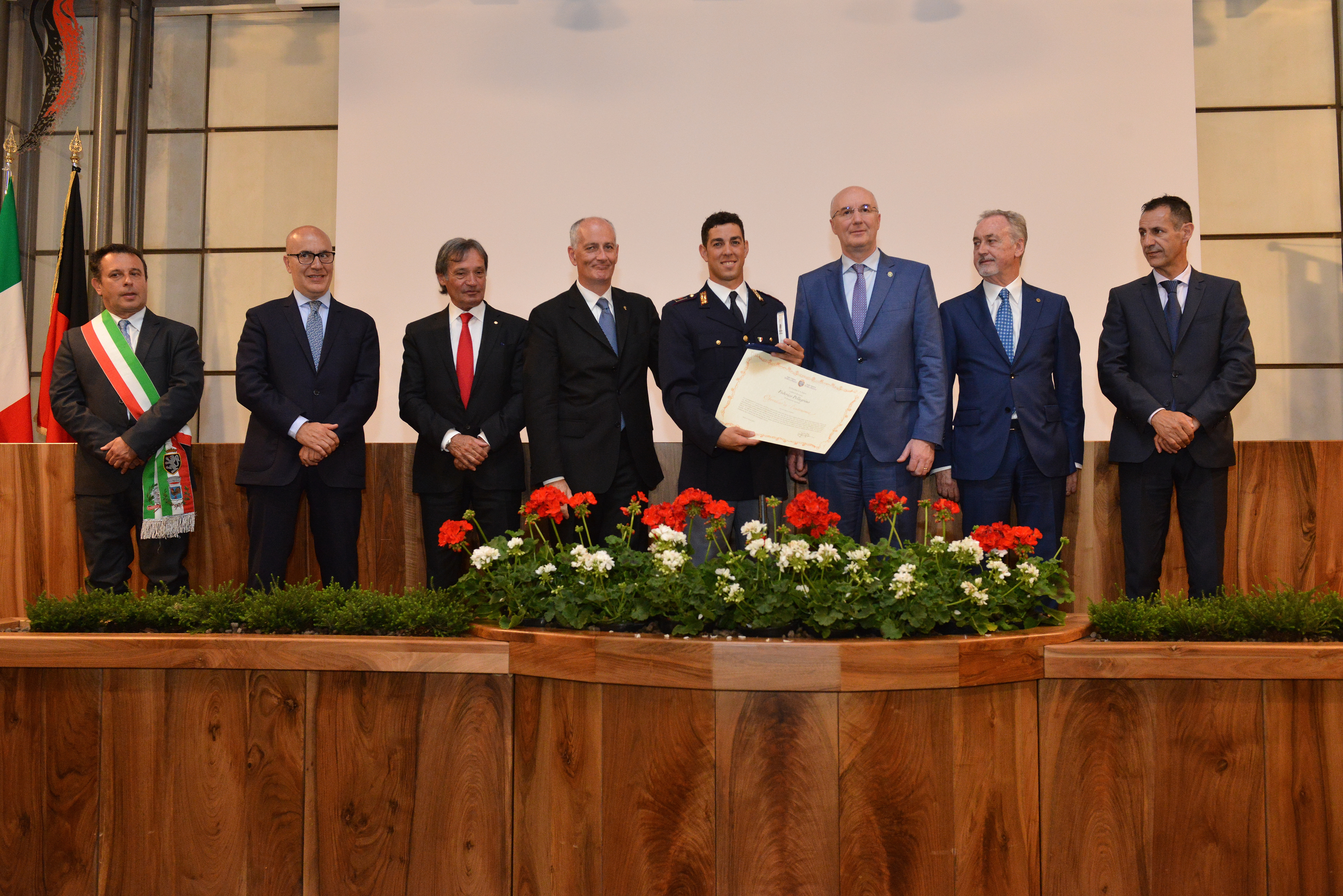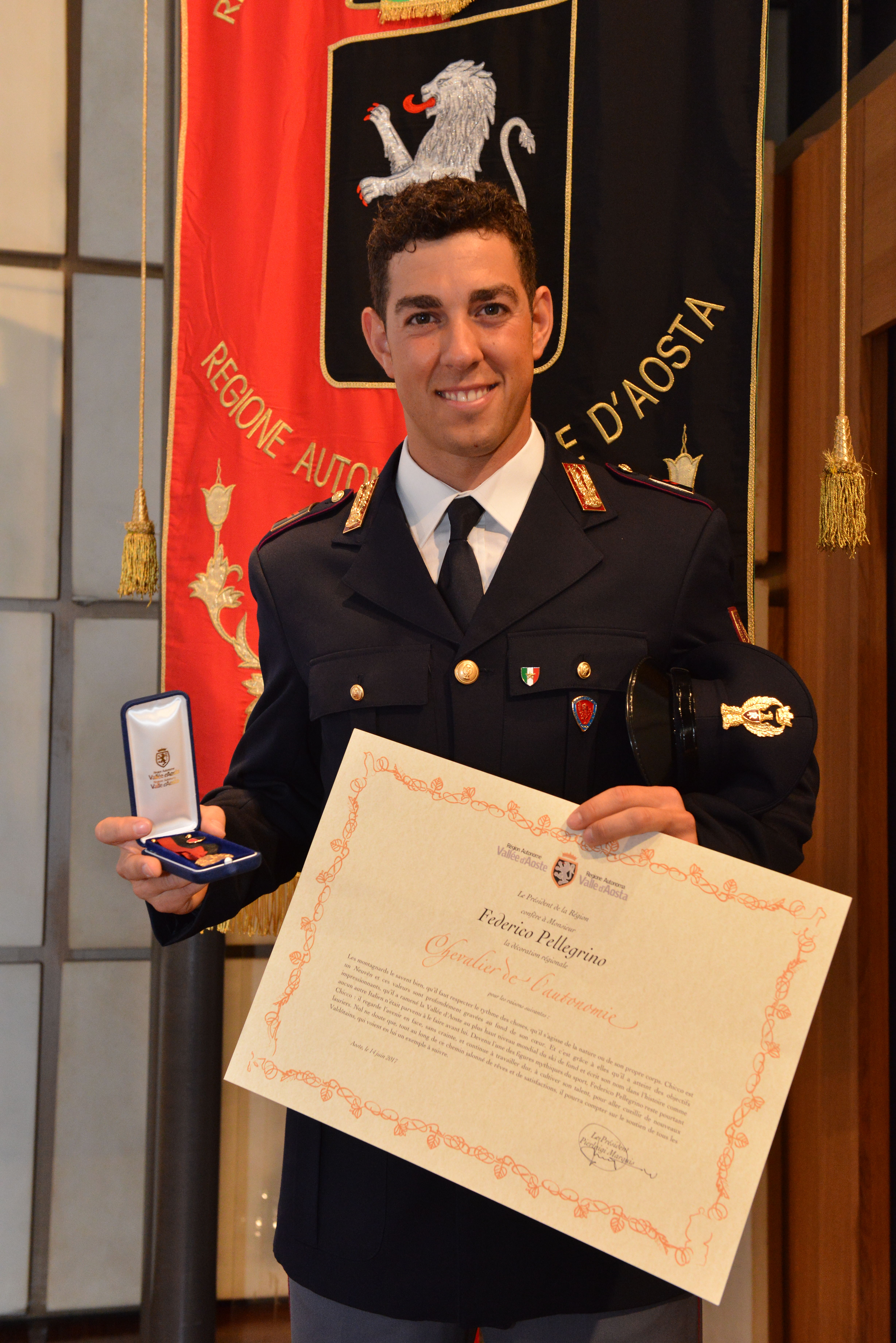 Remise de la décoration de Chevalier de l'autonomie à Federico Pellegrino