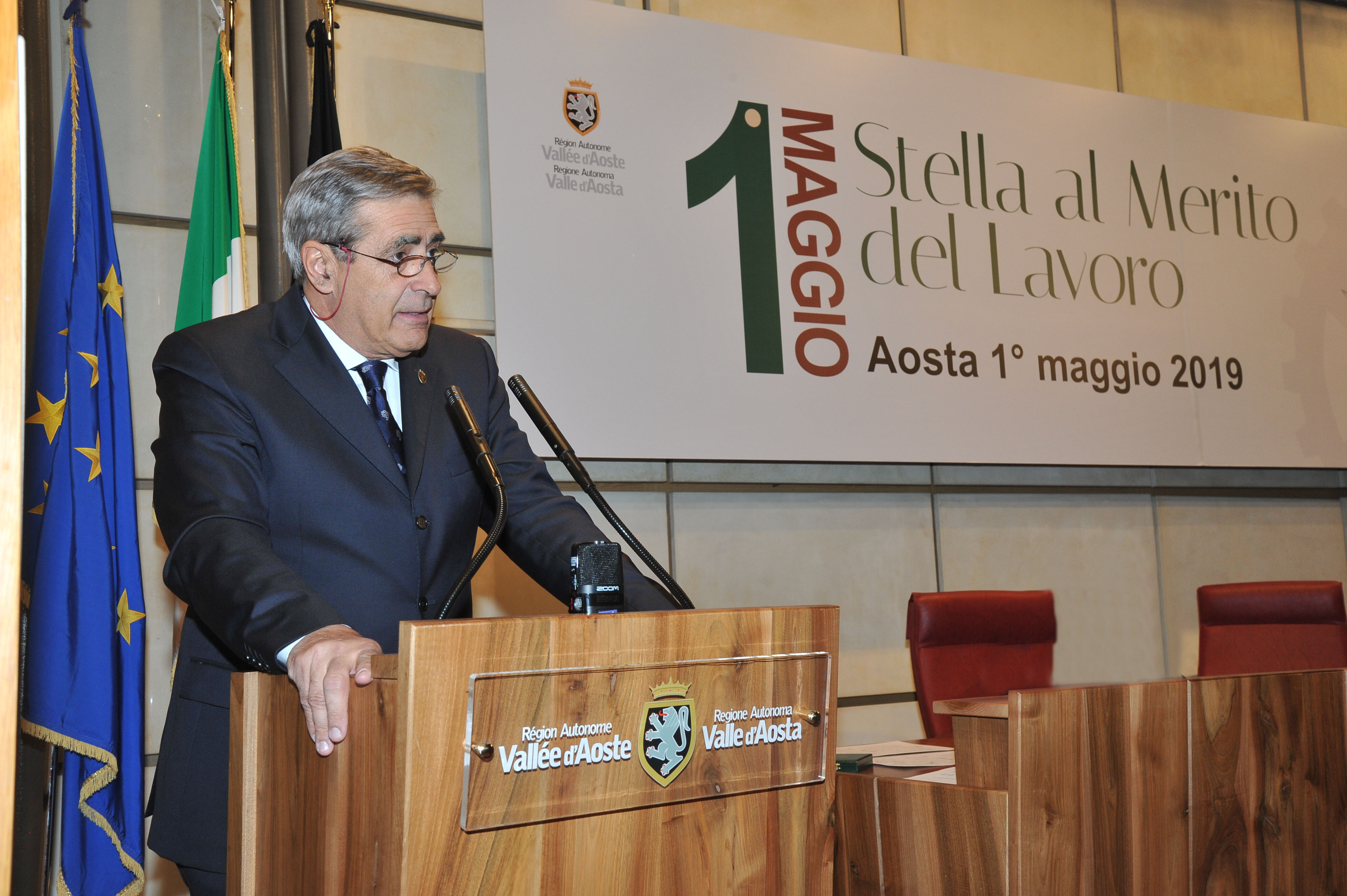 Cérémonie de remise de la Stella al Merito del Lavoro aux nouveaux Maîtres du travail valdôtains :