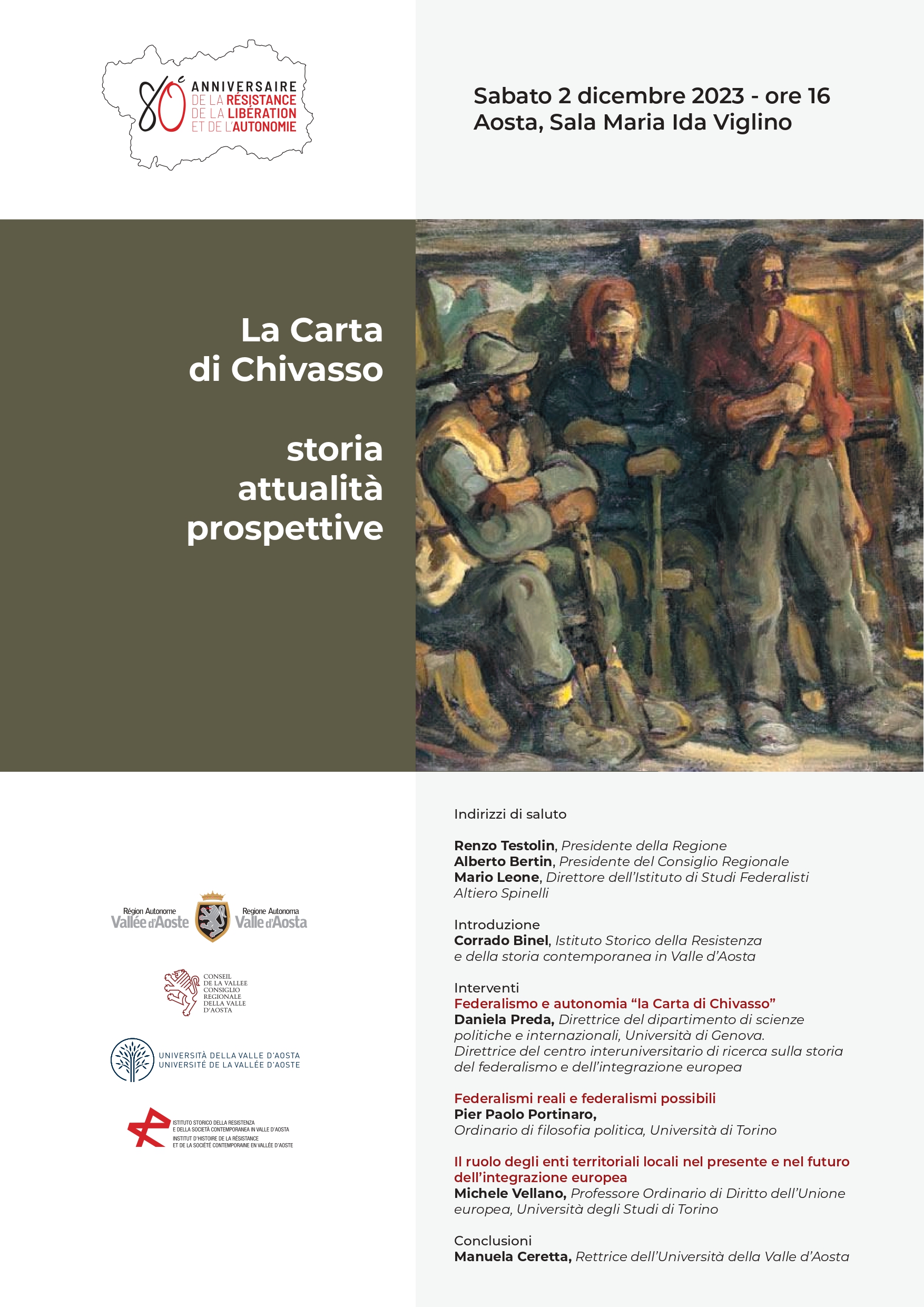 sabato 2 dicembre 2023 ore 16 Aosta, Sala Viglino del Palazzo regionale