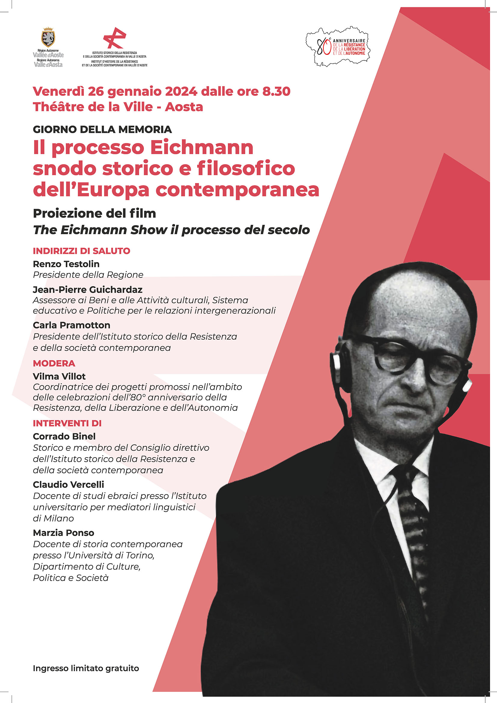 Convegno "Il processo Eichmann, snodo storico e filosofico dell'Europa contemporanea" rivolto agli studenti delle classi 4^ e 5^ delle Scuole secondarie di secondo grado