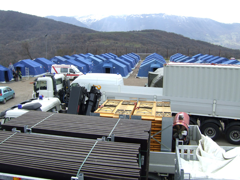 La colonna mobile valdostana è destinata al campo di San Menna messo a disposizione dal Ministero dell’Interno, ubicato all’interno del campo sportivo e gestito dal Sindaco del paese. Immediatamente iniziano le operazioni di allestimento: