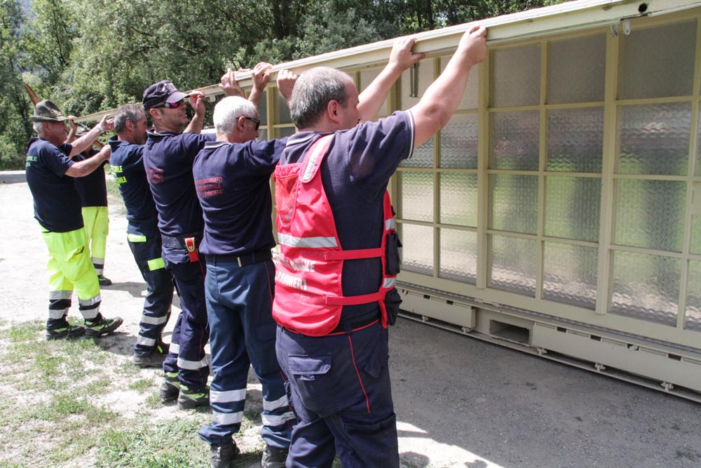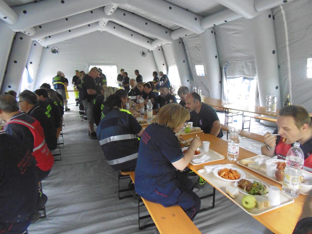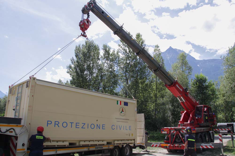 Tutte le attività si sono svolte regolarmente e lungo l’arco dell’intera giornata, con il supporto anche di una autogru dei Vigili del Fuoco della Valle d’Aosta per movimentare la nuova struttura della cucina campale.