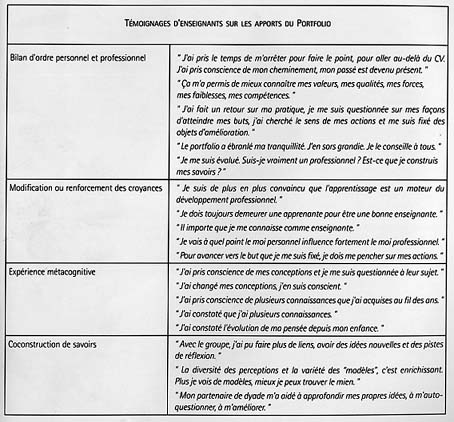 portfolio au sein d'une équipe-école. Les témoignages