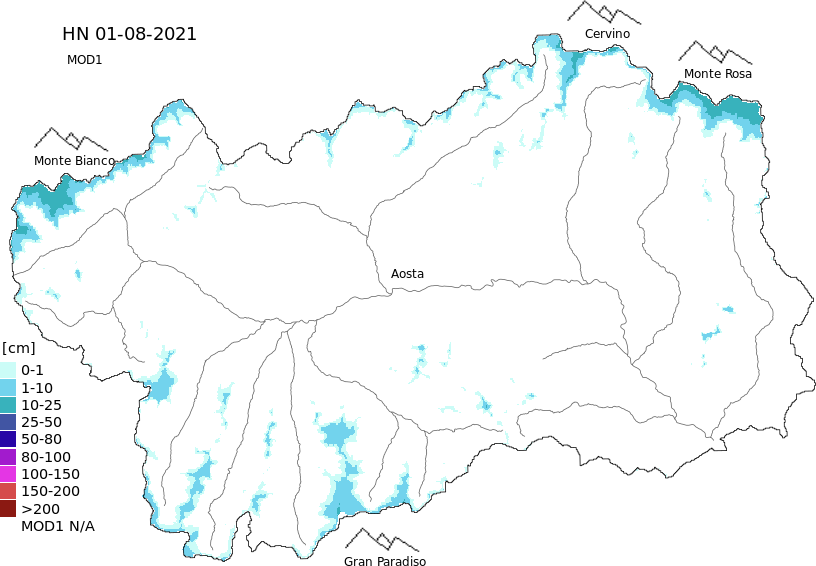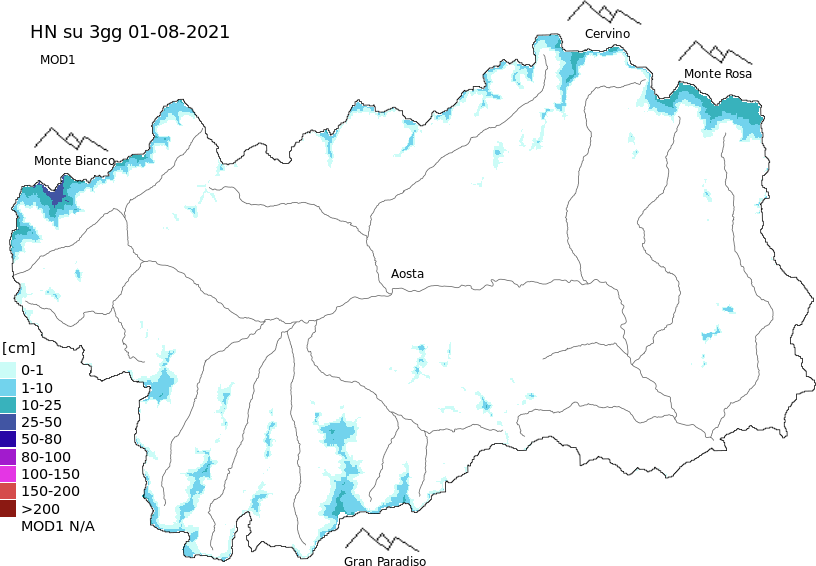 New snow in the last 72h + Modello 1 AINEVA (MOD1) data