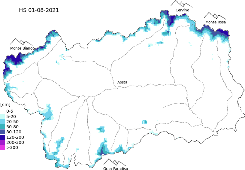 Snow depth + automatic weather station data (AWS) + Modello 1 AINEVA (MOD1) data above 2000 m