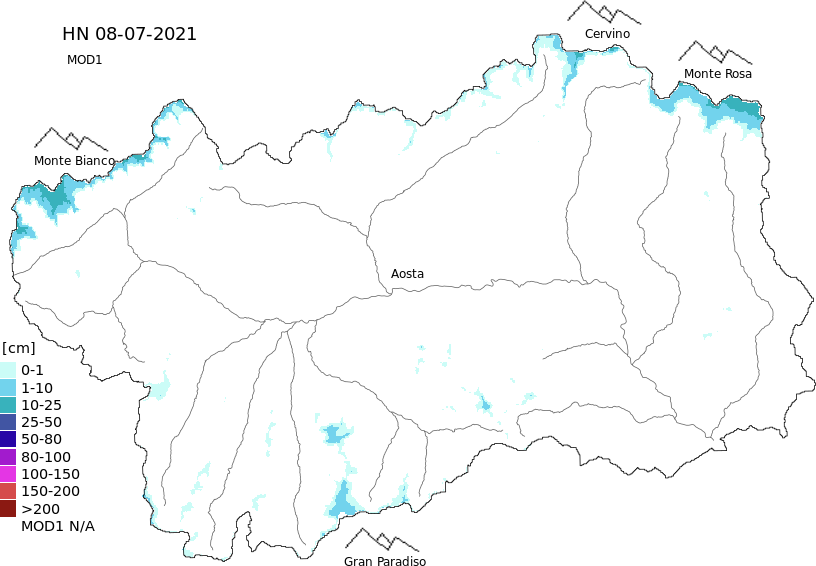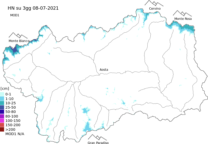 New snow in the last 72h + Modello 1 AINEVA (MOD1) data