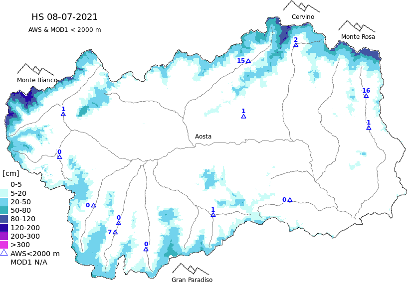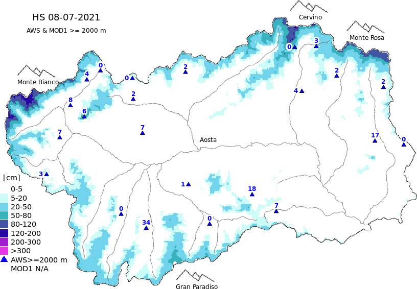 Snow depth + automatic weather station data (AWS) + Modello 1 AINEVA (MOD1) data above 2000 m