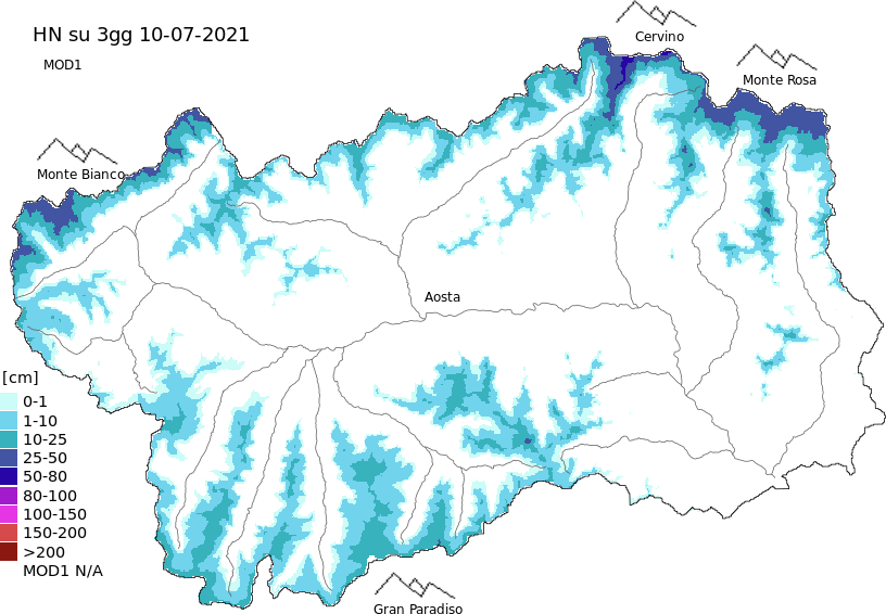 New snow in the last 72h + Modello 1 AINEVA (MOD1) data