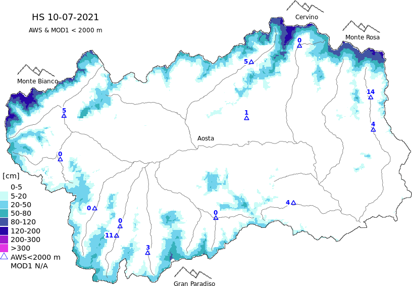 Snow depth + automatic weather station data (AWS) + Modello 1 AINEVA (MOD1) data above 2000 m