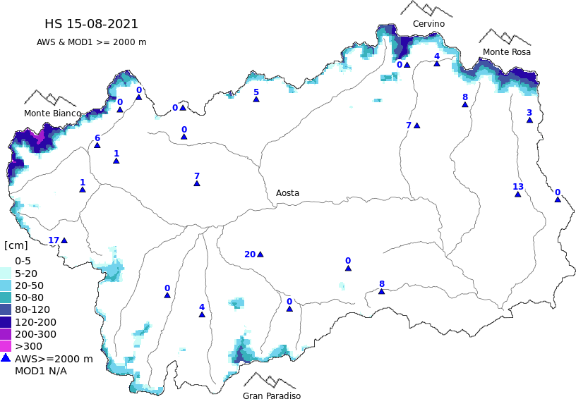 Snow depth + automatic weather station data (AWS) + Modello 1 AINEVA (MOD1) data above 2000 m