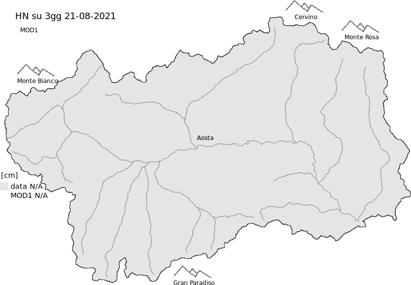 New snow in the last 72h + Modello 1 AINEVA (MOD1) data