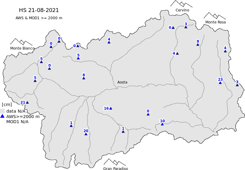 Snow depth + automatic weather station data (AWS) + Modello 1 AINEVA (MOD1) data above 2000 m