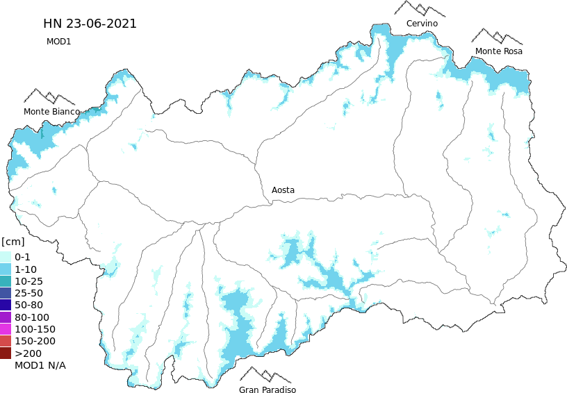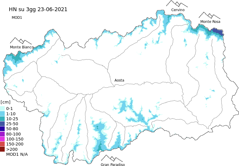 New snow in the last 72h + Modello 1 AINEVA (MOD1) data