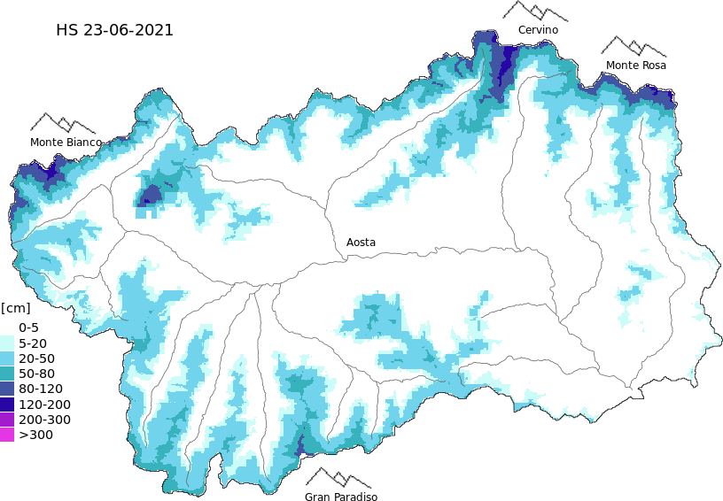 Snow depth + automatic weather station data (AWS) + Modello 1 AINEVA (MOD1) data above 2000 m