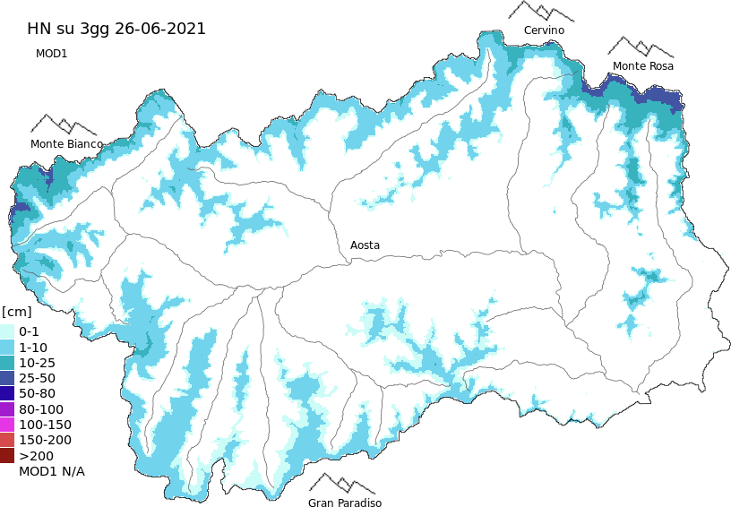 New snow in the last 72h + Modello 1 AINEVA (MOD1) data