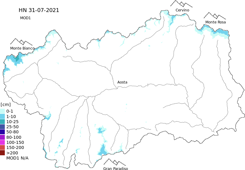 Snow depth + automatic weather station data (AWS) + Modello 1 AINEVA (MOD1) data above 2000 m
