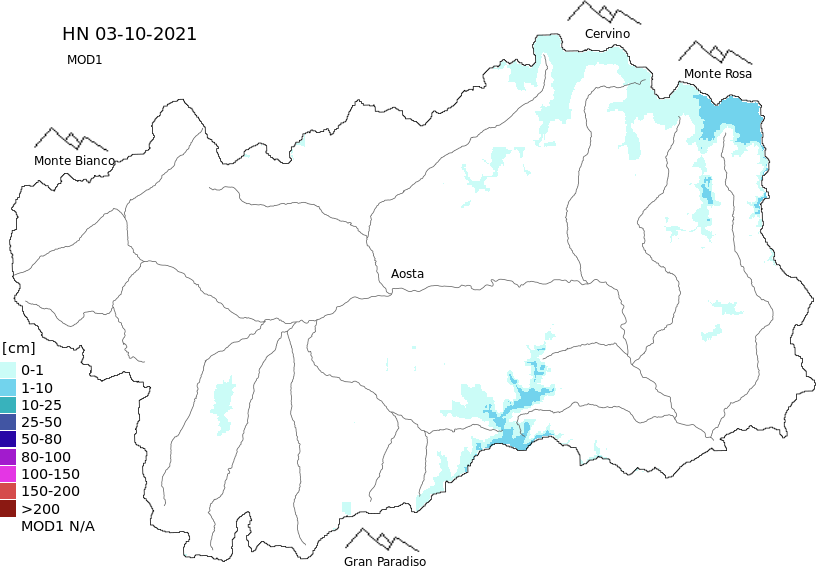Altezza neve al suolo + dati stazioni automatiche (AWS) e Modelli 1 AINEVA (MOD1) oltre i 2000 m