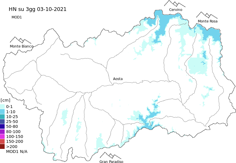 Neve fresca nelle ultime 72h + dati Modello 1 AINEVA (MOD1)