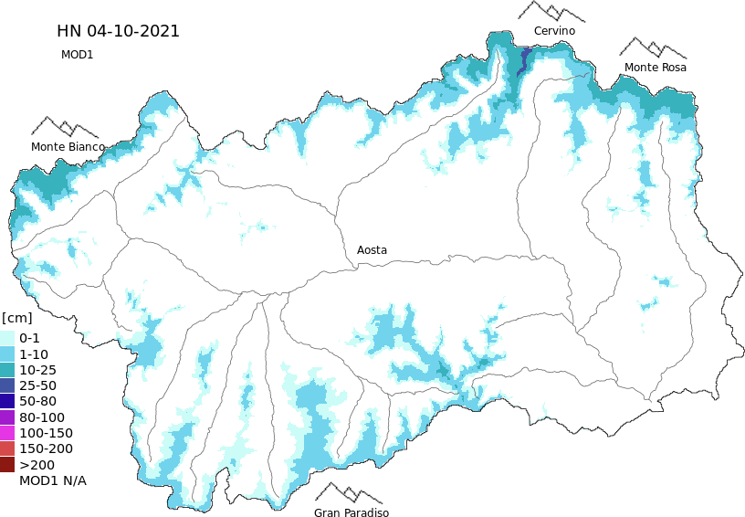 Altezza neve al suolo + dati stazioni automatiche (AWS) e Modelli 1 AINEVA (MOD1) oltre i 2000 m