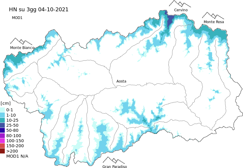 Neve fresca nelle ultime 72h + dati Modello 1 AINEVA (MOD1)