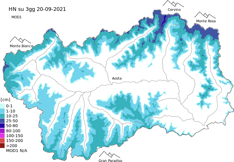 Neve fresca nelle ultime 72h + dati Modello 1 AINEVA (MOD1)