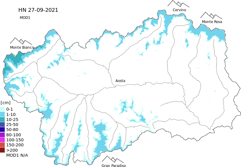 Altezza neve al suolo + dati stazioni automatiche (AWS) e Modelli 1 AINEVA (MOD1) oltre i 2000 m