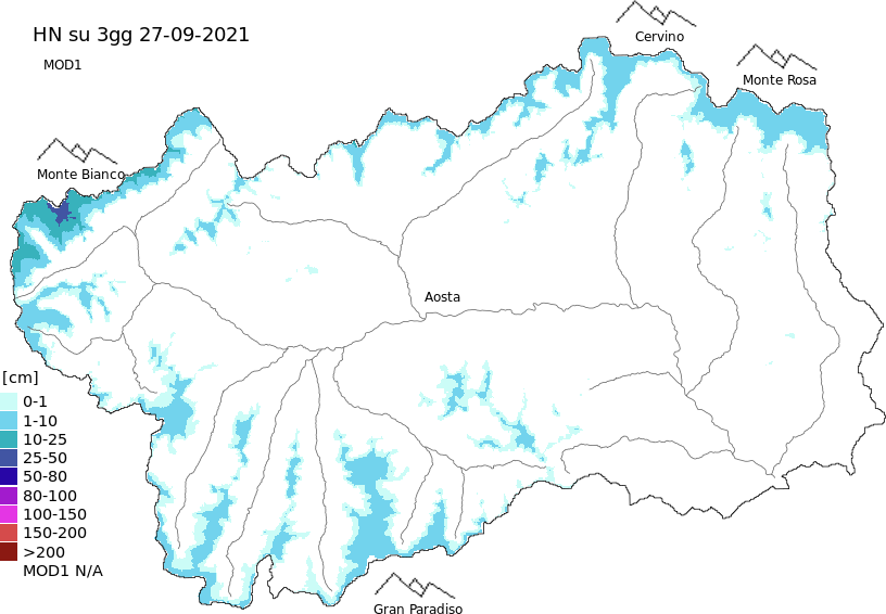 Neve fresca nelle ultime 72h + dati Modello 1 AINEVA (MOD1)