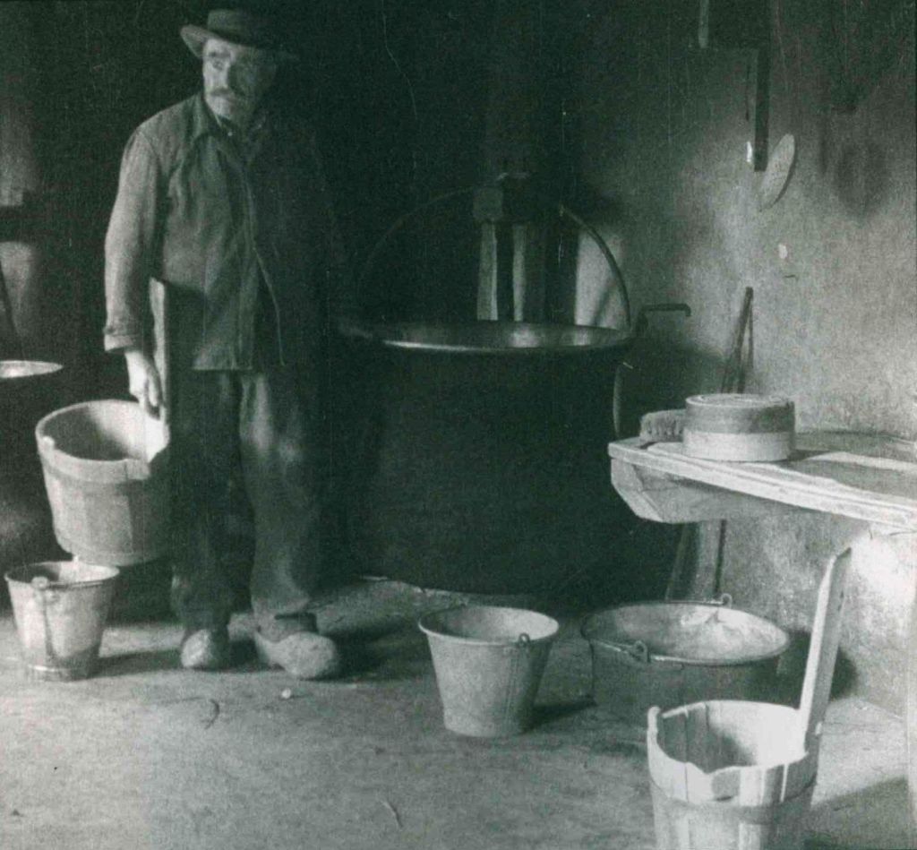 Si tratta di un secchio in legno utilizzato in Valle d’Aosta per lasciare riposare la Brossa, una ‘crema’ che si ottiene dal siero del latte con l’aggiunta di aceto.