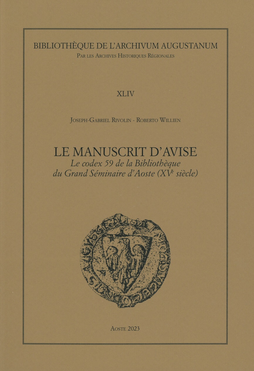 Joseph-Gabriel Rivolin, Roberto Willien, Le manuscrit d'Avise. Le codex 59 de la Bibliothèque du Grand Séminaire d'Aoste (XVe siècle), Aoste 2023 (Bibliothèque de l'Archivum Augustanum XLIV).