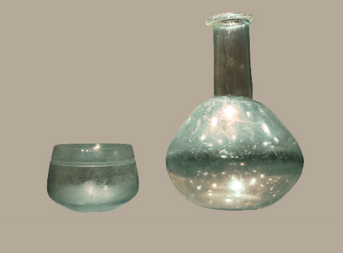 Due vetrine accolgono una selezione di oggetti in metallo quali brocche, parti di manici di situle (contenitori per l’acqua), posate, una lucerna e una serie di oggetti in vetro, uno dei materiali rinvenuti più di frequente ad Augusta Prætoria.