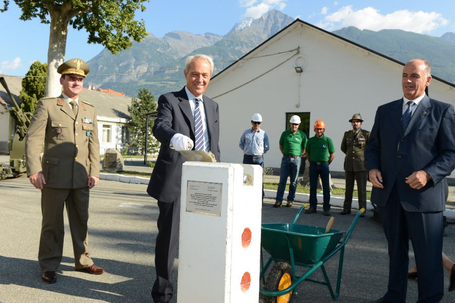 Cerimonia della posa della prima pietra per la ristrutturazione del comprensorio militare Battisti-Ramires e Eliporto di Pollein per la cessione della caserma Testafochi e la realizzazione della Nuova Università Valdostana