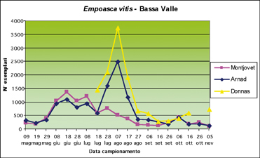 Figura 5. Dinamica di popolazione di Empoasca vitis nei