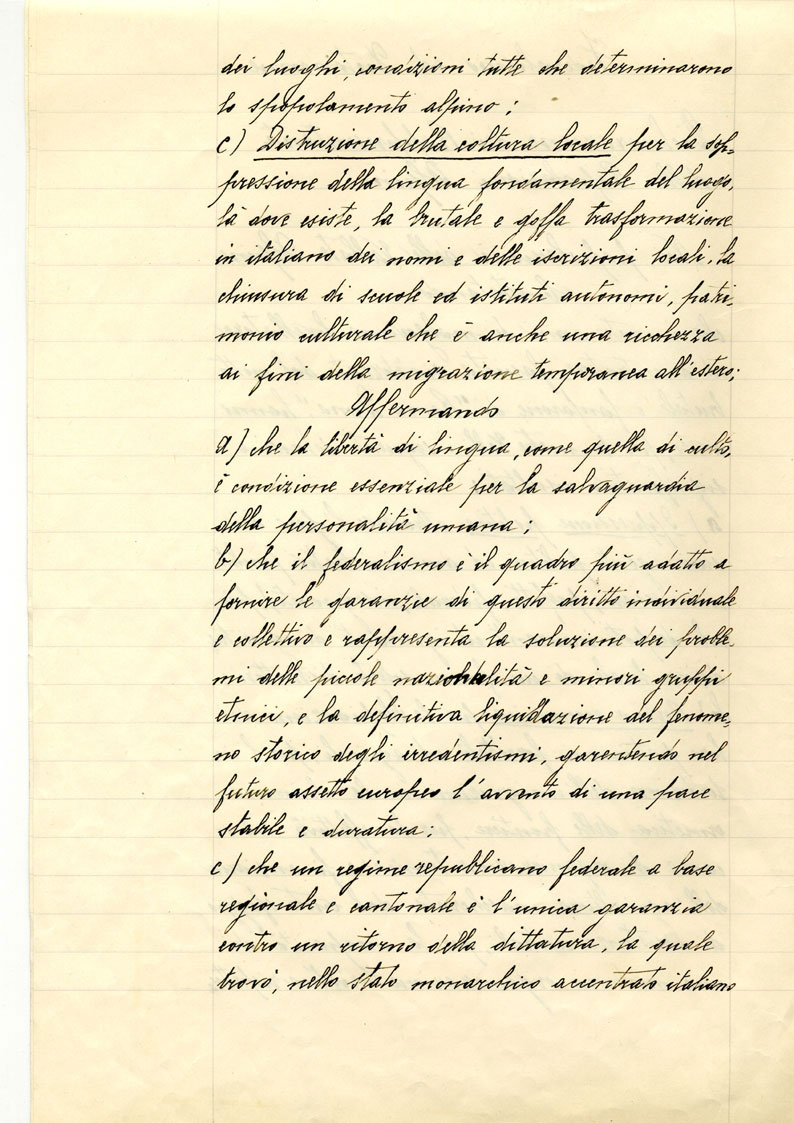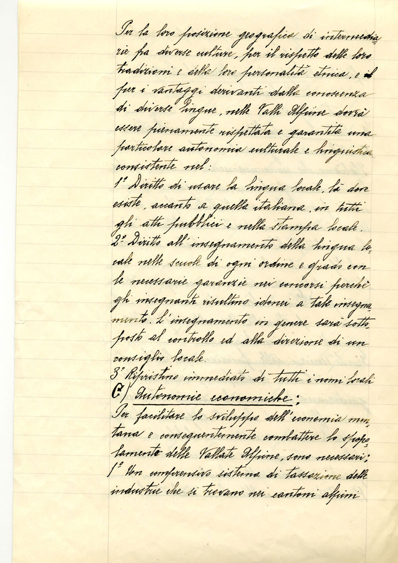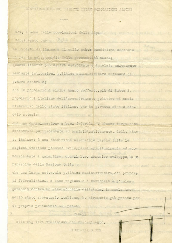 Dichiarazione dei rappresentanti delle popolazioni alpine (manoscritto attribuibile a Ernest Page)